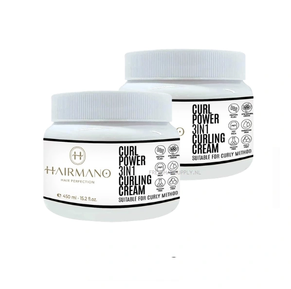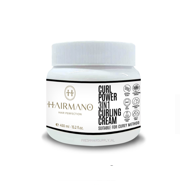 Hairmano Curl Power cream is een multifunctionele krullencrème ontworpen om krullen te definiëren, pluis onder controle te houden en het haar te beschermen